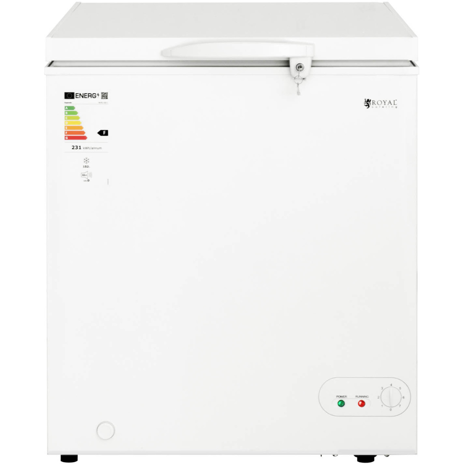 Zamrażarka skrzyniowa marki Royal Catering sprawdzi się do przechowywania żywności w restauracjach, bufetach, hotelach, sklepach a także w domowej spiżarni. Urządzenie posiada dużą pojemność 152 l. W komplecie znajduje się kosz i przegródka do segregacji żywności. Oświetlenie LED umożliwia lepszą widoczność wnętrza. Temperatura regulowana jest w 7 stopniach w zakresie -12 do -28C. Wbudowany termostat utrzymuje ją na wskazanym poziomie. Wnętrze wykonane zostało z tłoczonego aluminium, pomaga zachować niską temperaturę, jest estetyczne i łatwe w utrzymaniu czystości. Zawór spustowy umożliwia cykliczne rozmrażanie. Urządzenie posiada klasę energetyczną F, zastosowano w nim czynnik chłodniczy R600a. Obudowę wykonano ze stali malowanej proszkowo. Pokrywa zamykana jest na zamek, unosi się płynnie i zatrzymuje na dowolnej wysokości.