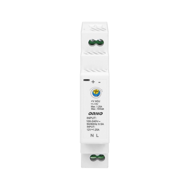 Wysokowydajny, charakteryzujący się stabilną pracą zasilacz o mocy 15W i napięciu wyjściowym 12V DC, istnieje możliwość regulacji napięcia wyjściowego. Zasilacz został zaprojektowany do montażu na szynę DIN i ma szerokie możliwości zastosowania, np. aplikacje przemysłowe, instalacji niskonapięciowych takich jak CCTV czy systemy alarmowe. Zasilacz posiada zabezpieczenia: przeciążeniowe, zwarciowe i nadnapięciowe. Załączenie zasilacza sygnalizuje dioda.