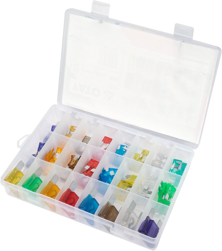 Zawartość zestawu: bezpieczniki x88 (mini: 3A x5, 5A x5, 7.5A x5, 10A x5, 15A x5, 20A x5, 25A x5, 30A x5 standard: 3A x5, 5A x5, 7.5A x5, 10A x5, 15A x5, 20A x5, 25A x5, 30A x5
