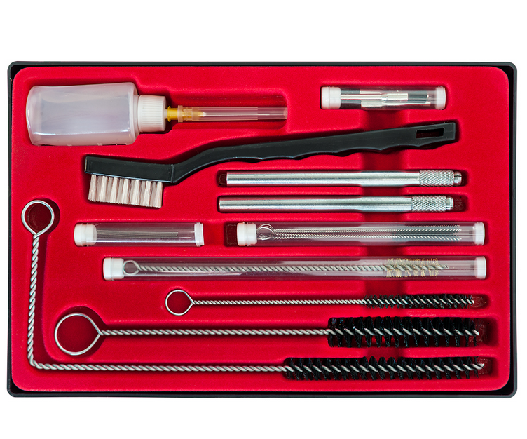 Zestaw czyszczący Airpress 45999 to zestaw do utrzymywania sprzętu lakierniczego, szczególnie pistoletów lakierniczych w dobrym stanie technicznym. Poszczególne elementy zestawu umożliwiają usuniecie wszelkich zanieczyszczeń zalegających w pistoletach lakierniczych, dbają o ich należyty stan i wydłużając ich żywotność.