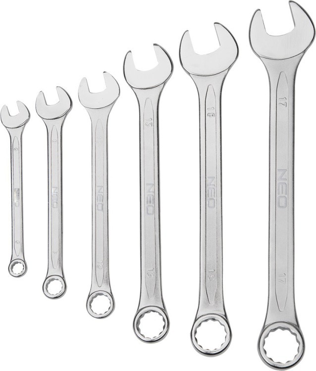 - Zestaw kluczy płasko-oczkowych zawiera klucze w popularnych rozmiarach, wykonane zgodnie z normą DIN 3113.