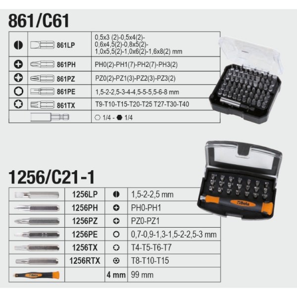 8. Końcówki wkrętakowe profil Torq-Set® Beta 861TQS Rozmiary: 0 - 1 - 2 - 3 - 4 - 5 - 6 - 8 - 10