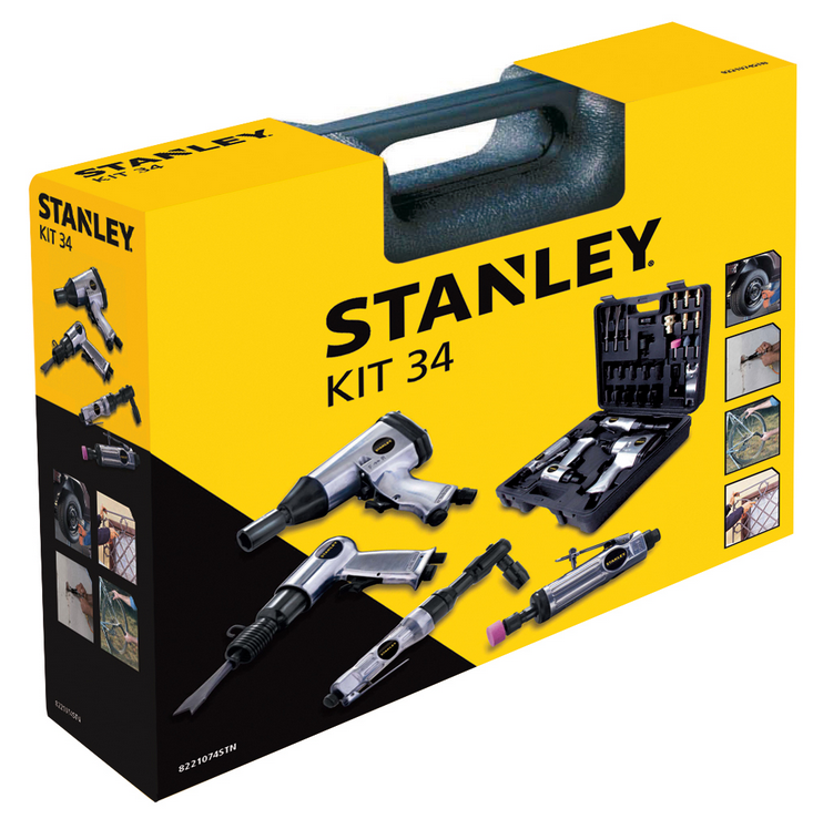 Zestaw narzędzi pneumatycznych Stanley 8221074STN to grupa narzędzi do różnych zastosowań zasilanych strumieniem sprężonego powietrza. Zestaw Stanley 8221074STN znajdzie zastosowanie w warsztatach naprawczych, samochodowych i w przemyśle.