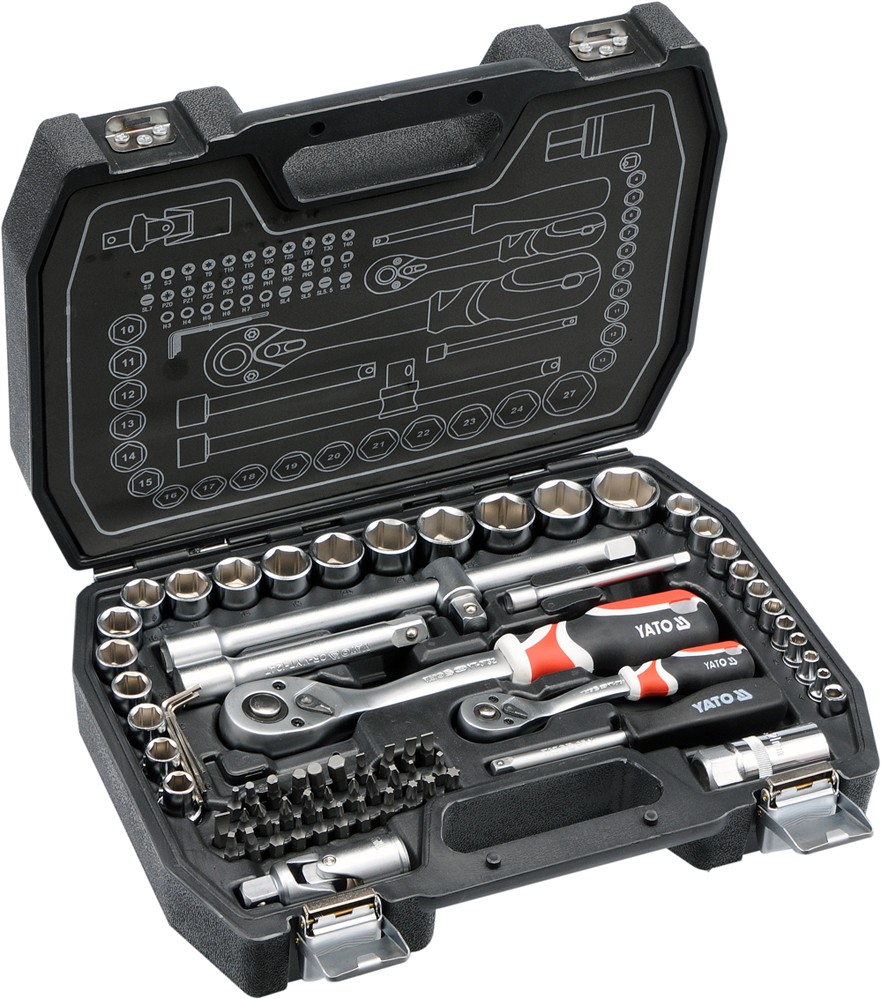 Strona główna » Narzędzia ręczne » Klucze » Klucze nasadowe » Nasadki » Zestawy nasadek » ZESTAW NARZĘDZIOWY 1/2'' 1/4' 72 CZĘŚCI M