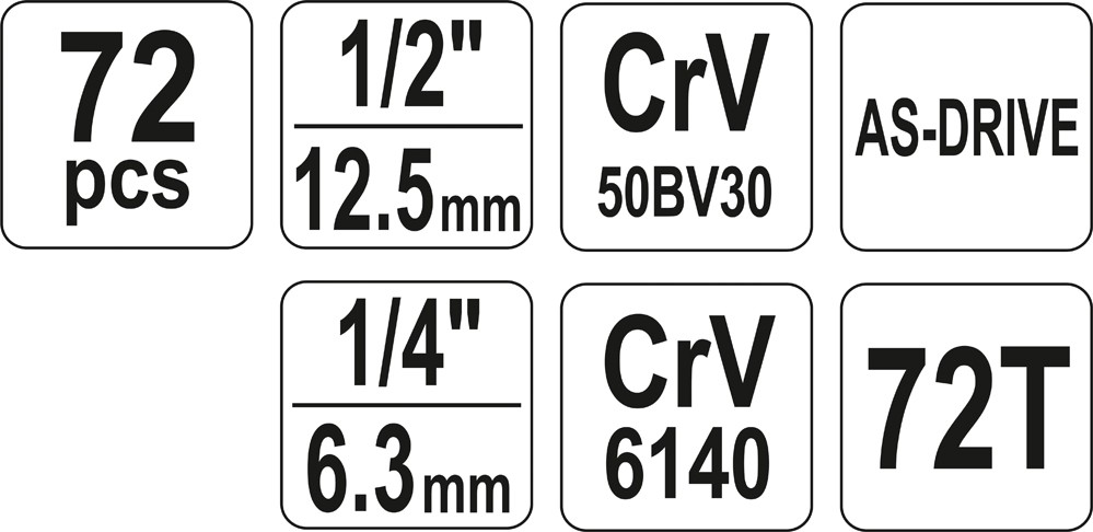 ZESTAW NARZĘDZIOWY 1/2'' 1/4' 72 CZĘŚCI M