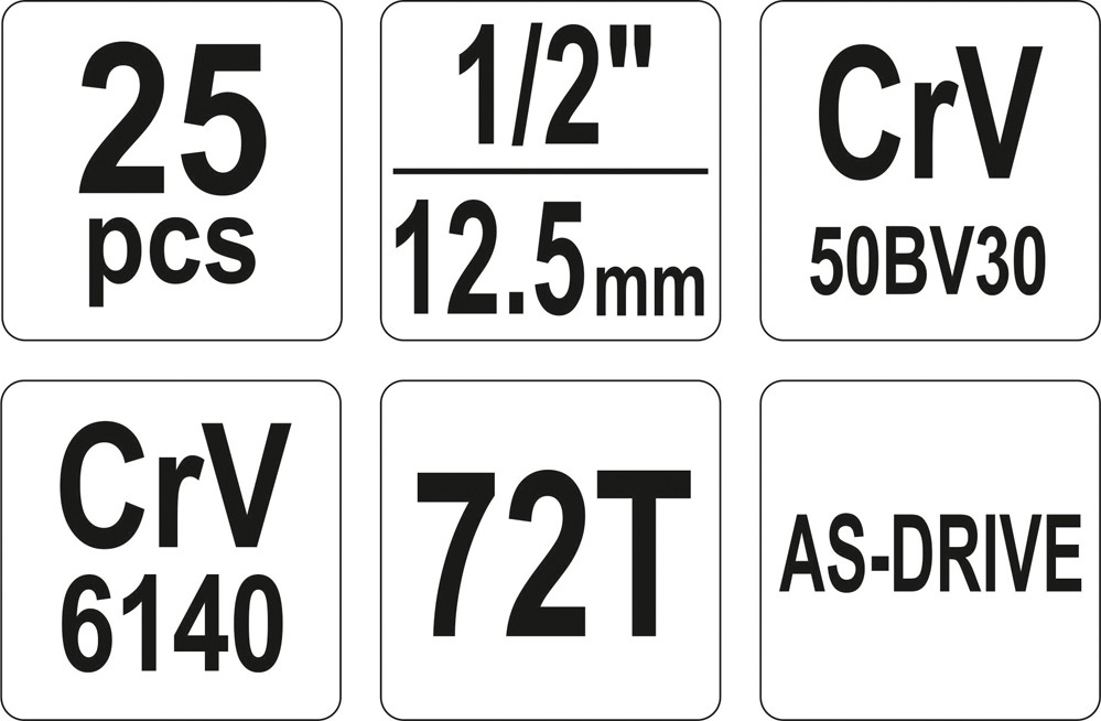 Klucze nasadowe, jak i napęd nasadek, zostały wykonane z wytrzymałej narzędziowej stali chromowo-wanadowej CrV 50BV30.