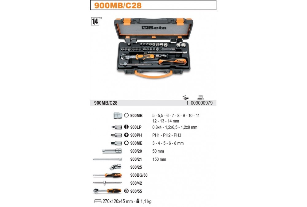Zestaw nasadek 1/4" + akcesoria 28 sztuk