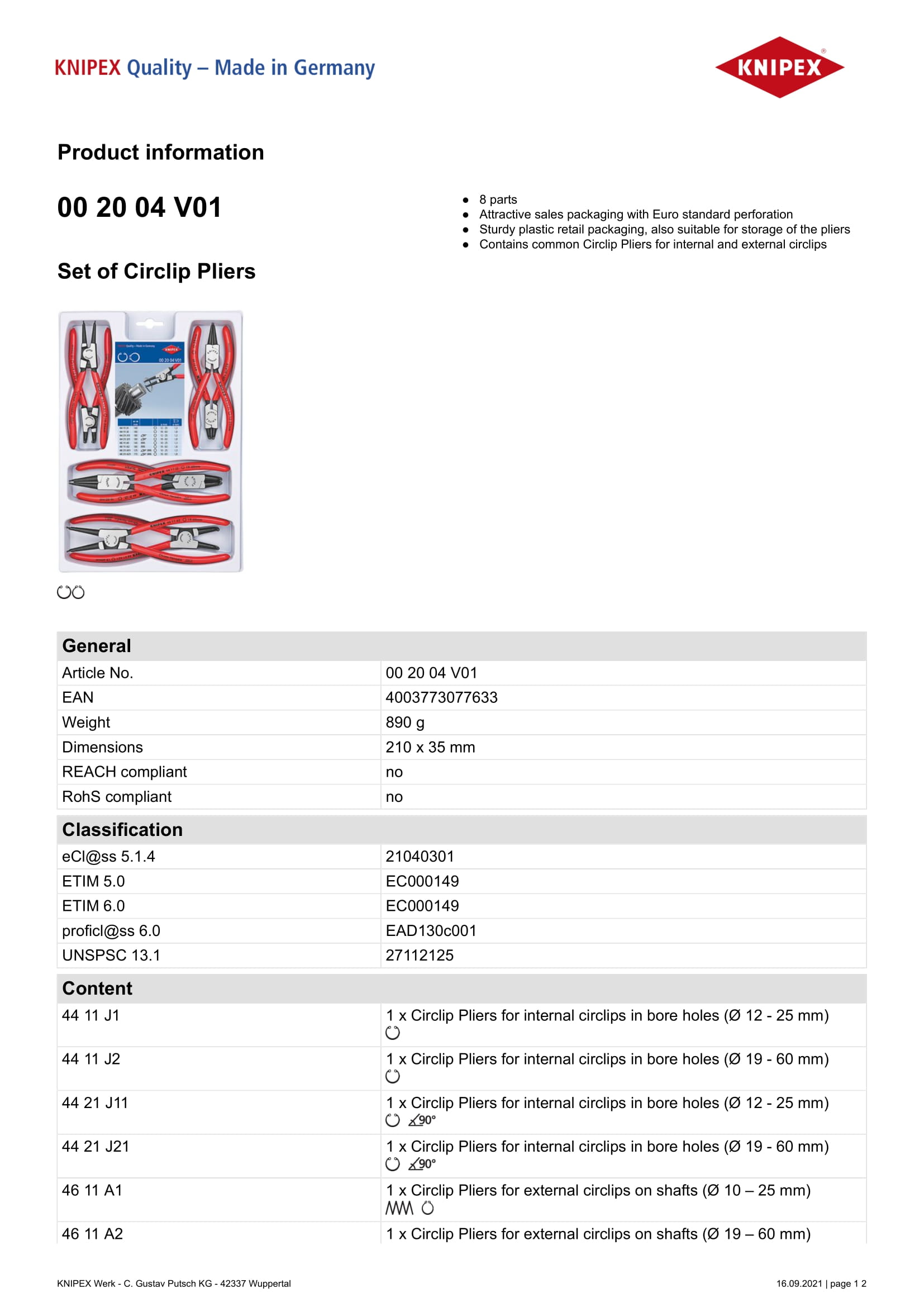 Zawiera popularne szczypce do pierścieni osadczych wewnętrznych i zewnętrznych