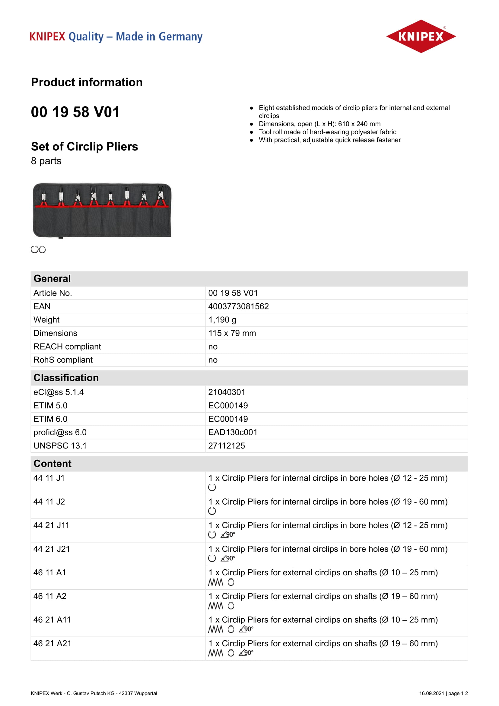 Nr artykułu: 00 19 58 V01