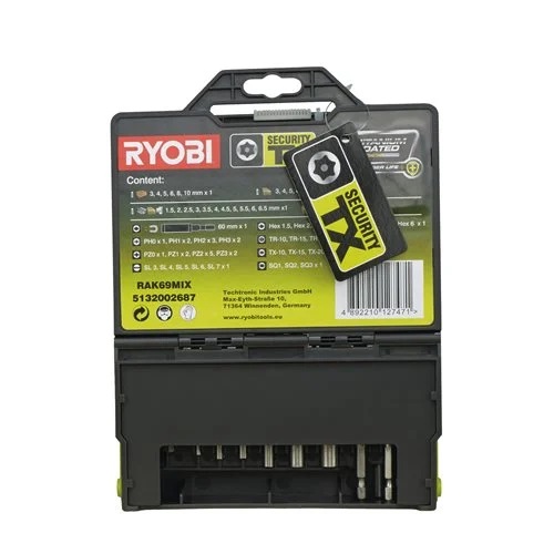 9 x końcówka wkrętakowa 25 mm (3 x Philips (PH1-PH3)) 1 x uchwyt magnetyczny końcówki 60 mm 5 x wiertło czołowe do drewna (3/4/5/6/8 mm) 6 x wiertło HSS (2/2,5/3/4/5/6 mm) 4 x klucz nasadowy (6/8/10/12 mm) 5 x wiertło do muru (5/5,5/6/6,5/7) 3 x Pozidrive (PZ1-PZ3) 3 x z rowkiem 4-6 mm)