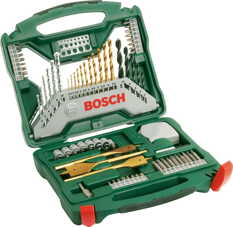 Spis treści: 11 wierteł HSS-TiN do metalu, O 1,5-6,5 mm 6 wierteł do muru, O 4-10 mm 5 wierteł do drewna, O 4-10 mm 3 wiertła płaskie, Titanium, O 16/22/32 mm 24 końcówki wkręcające, L = 25 mm PH 0/1/1/2/2/3 PZ 0/1/1/2/2/3 S 4/6/7 HEX 3/4/5/6 T 10/15/20/25/40 10 końcówek wkręcających o długości 50 mm PH 1/2/3 PZ 1/2/3 S 4/6 T 20/25 7 kluczy nasadowych, O 4/5/6/7/8/9/10 mm 1 adapter do kluczy nasadowych