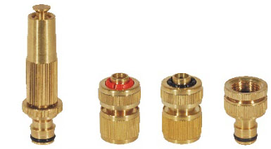 -w zestawie: zraszacz prosty regulowany, przyłącz z gwintem wewnętrznym, szybkozłącze przelotowe, szybkozłącze z funkcją stop