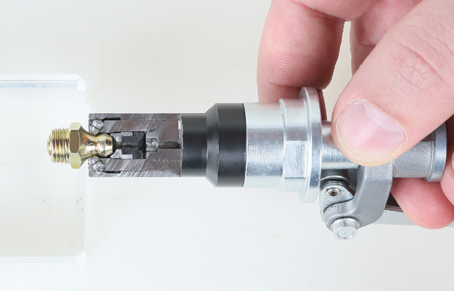 Raz zamocowana, pozostaje w osi połączona ze smarowniczką, nie musi być trzymana jak zwykłe dysze.