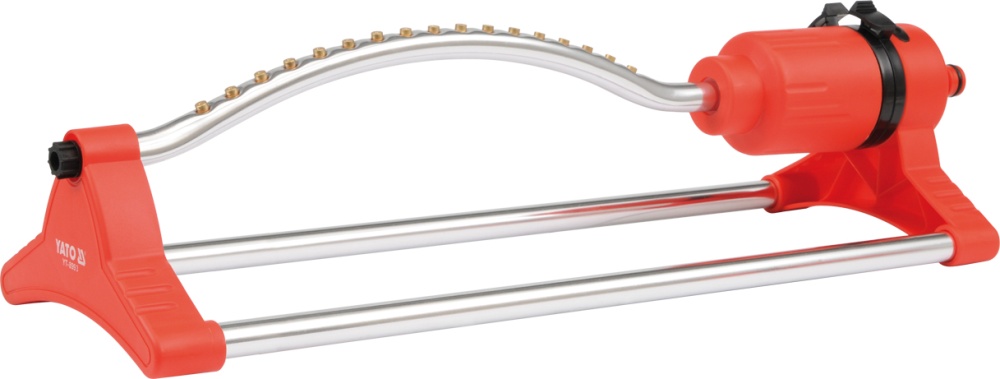 Zraszacz wahadłowy wykonany z ABS i aluminium. Wyposażony w specjalne dysze, które łatwiej oczyszczać. Możliwość płynnej regulacji. 17 otworów.