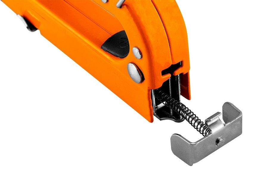 Zszywacz tapicerski NEO (nr ref. 16-032) na zszywki typu J, o rozmiarze od 4 do 14 mm. Doskonale sprawdza się w pracach tapicerskich, dekoratorskich, w mocowaniu folii, skóry i innych materiałów. Dzięki regulacji siły wbijania zszywek może być używany zarówno do twardych jak i miękkich materiałów. Precyzyjnie dobija zszywki bez zgniatania ich, nawet w twarde materiały. Obudowa zszywacza wykonana została ze stali.